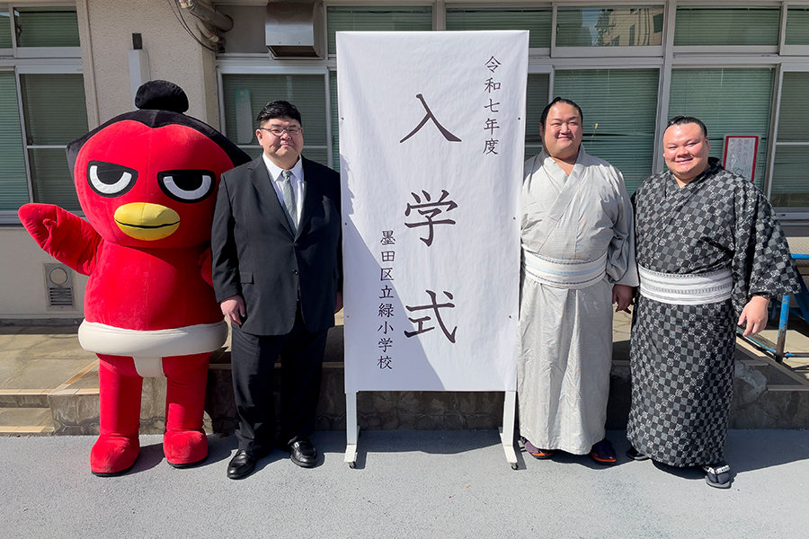 公益財団法人日本相撲協会は墨田区立小学校の新1年生の皆さんにランドセルカバー約1,700枚を寄付いたしました。