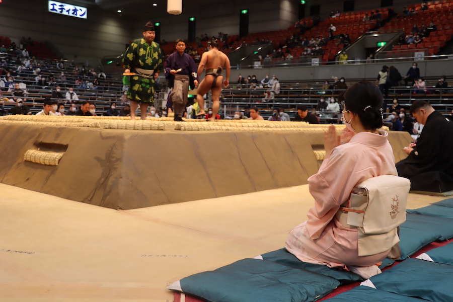 土俵周りで、お一人様ずつ座布団に座って観戦していただくお席です。