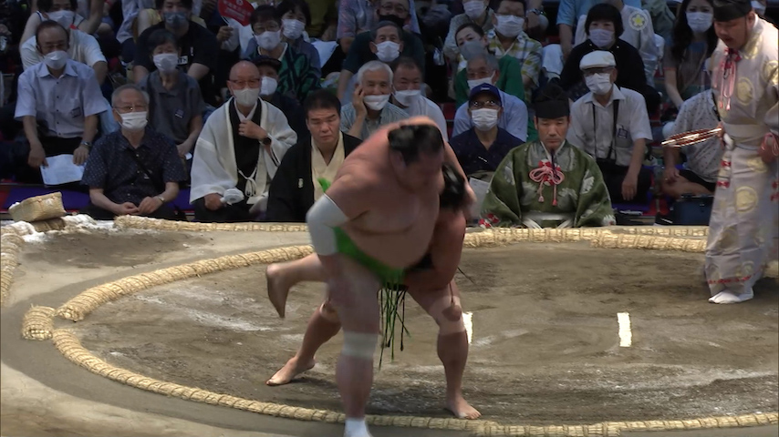 | Day | East | Kimarite(Winning Technique) | West | ||