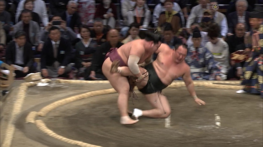 | Day | East | Kimarite(Winning Technique) | West | ||