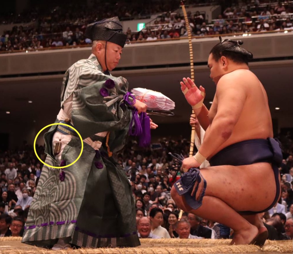 三役格行司になると装束に印籠を持つことが許されます。さて、どこに所持しているでしょうか?