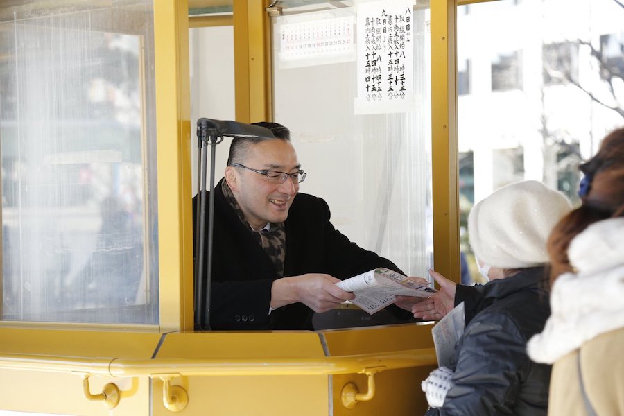 大相撲の会場ではこの木戸でもぎり担当の親方が皆様をお出迎えいたします。