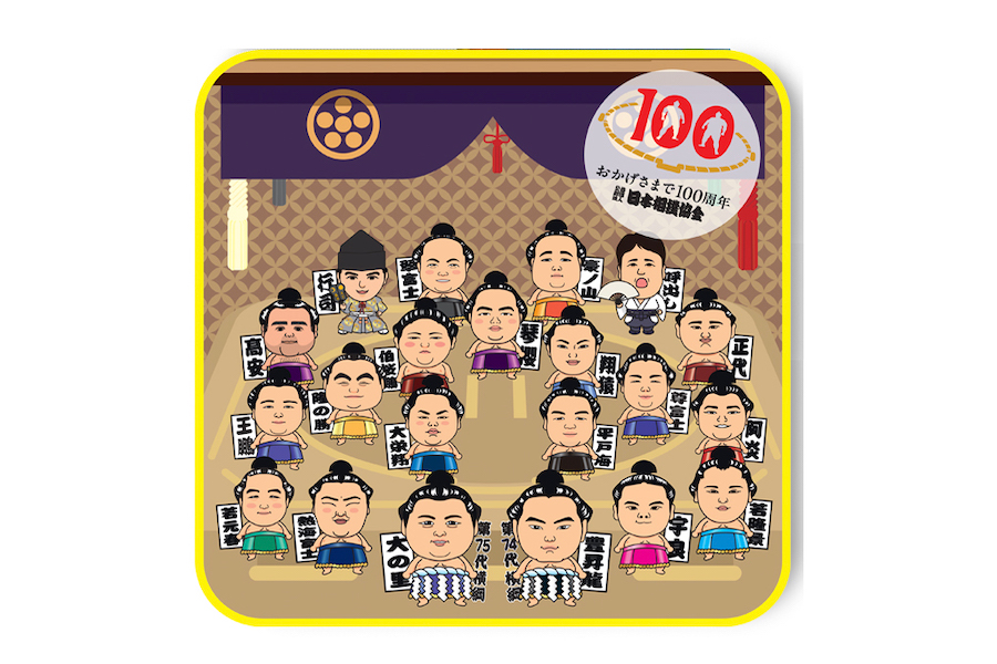 全親方&全幕内力士の化粧まわし写真を掲載する他、日本相撲協会百年史年表や当日の限定グッズ&グルメ情報を掲載。
