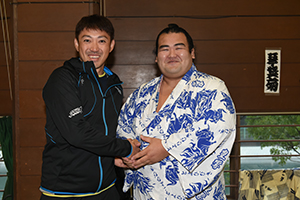 | ▲稽古終わり、琴勇輝と錦木 | |