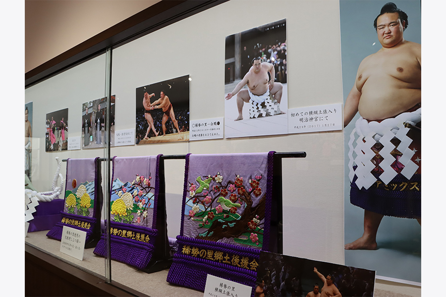 平成後半、令和の大相撲で競い合い土俵を沸かせた三横綱の特別展を大相撲ファン感謝祭に合わせて開催しました。愛用の着物、化粧廻し、綱や新弟子時代の貴重な写真資料などをご覧頂きました。